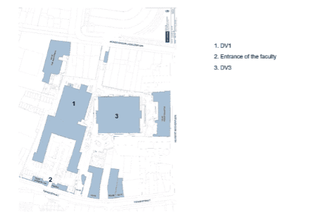 Please note that the Faculty consists of 2 buildings. The ‘Oude Valk’ (= DV1) and the ‘Nieuwe Valk’ (= DV3).